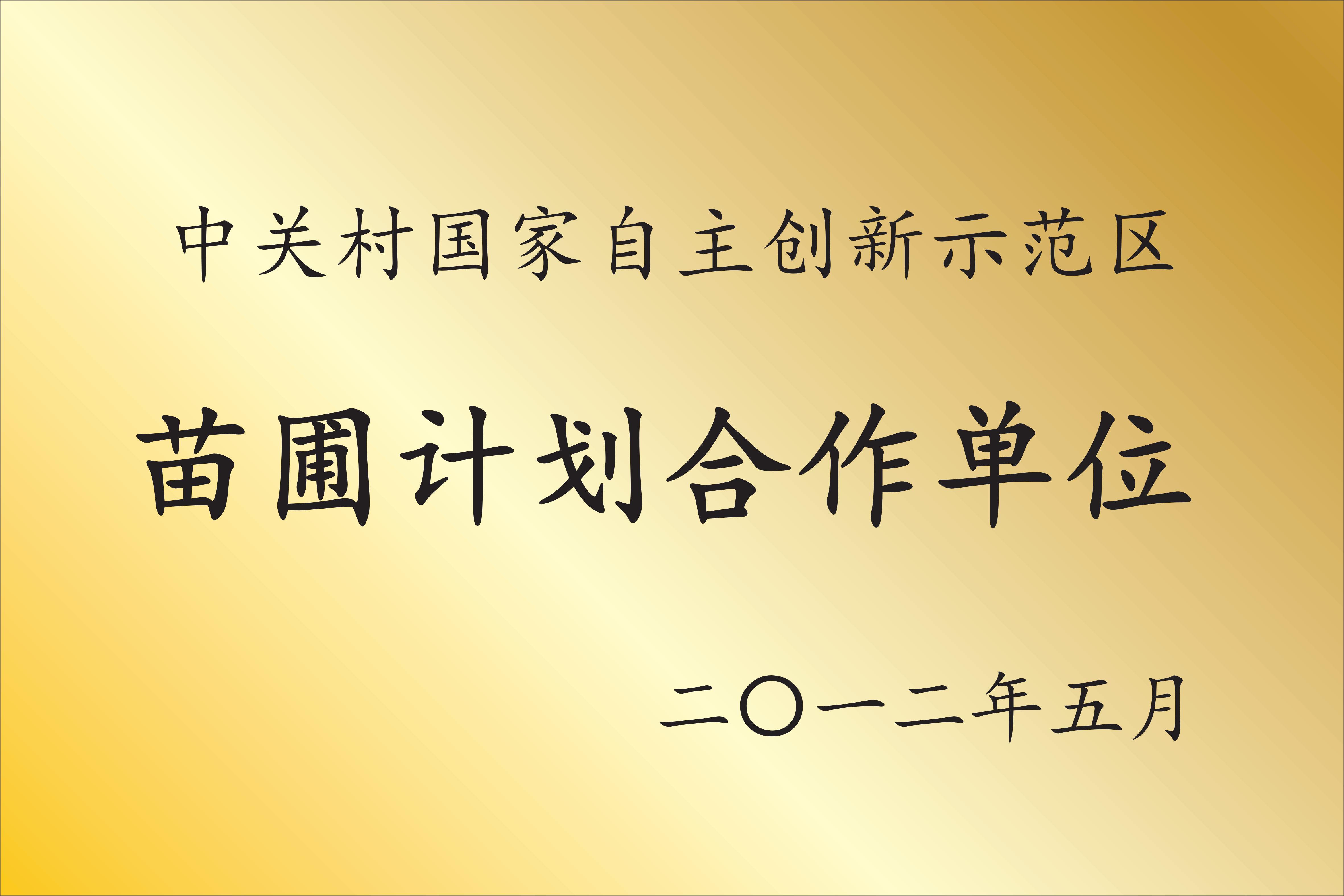 中关村国家自主创新示范区苗圃计划合作单位(牡丹集团) |